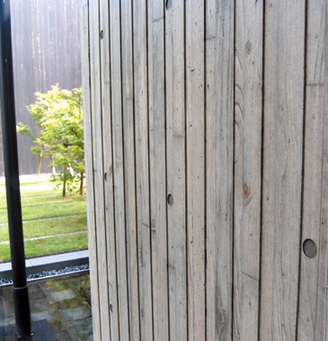 To achieve a finer texture than that of ordinary exposed concrete, we applied formwork of cedar panels 35 to 60 mm wide and 12 mm and 15 mm thick, boarded up with plywood. With plenty of trials and testing, we paid careful attention to the management of cedar panels (pretreatment, moisture conditions and cross-section shape), solidity of concrete and the appropriate timing to remove the formwork.