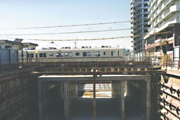 This is a no-dig construction method for underpass constructions. After taking on the orbital or road load with a rectangular steel tube attached with a friction-cut plate, it shoves the precast box culvert and replaces the steel tube with the box. It allows for a construction of a quality underpass with small earth covering. We have taken on over 250 experiences up till now.