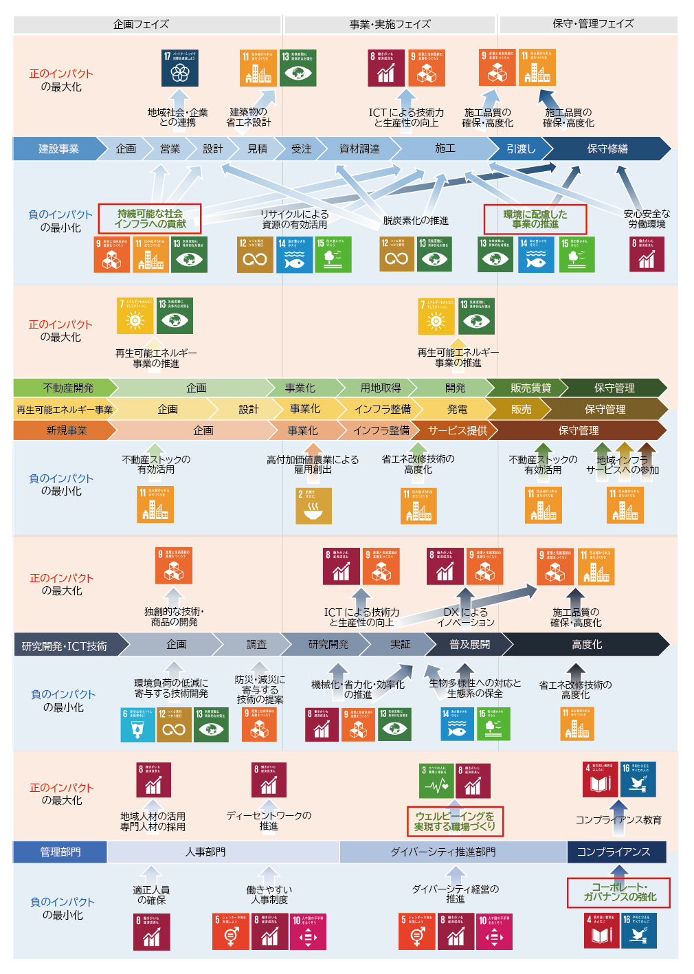 SDGsマテリアリティマッピング(事業活動における影響評価)