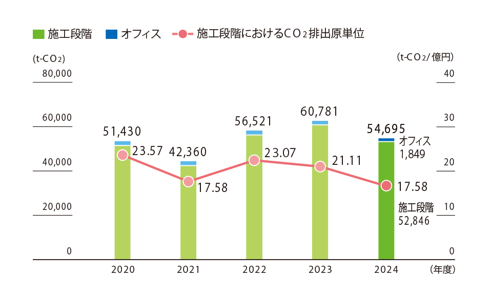 ※2024年度の施工段階におけるCO2排出量は、再エネ利用を含む