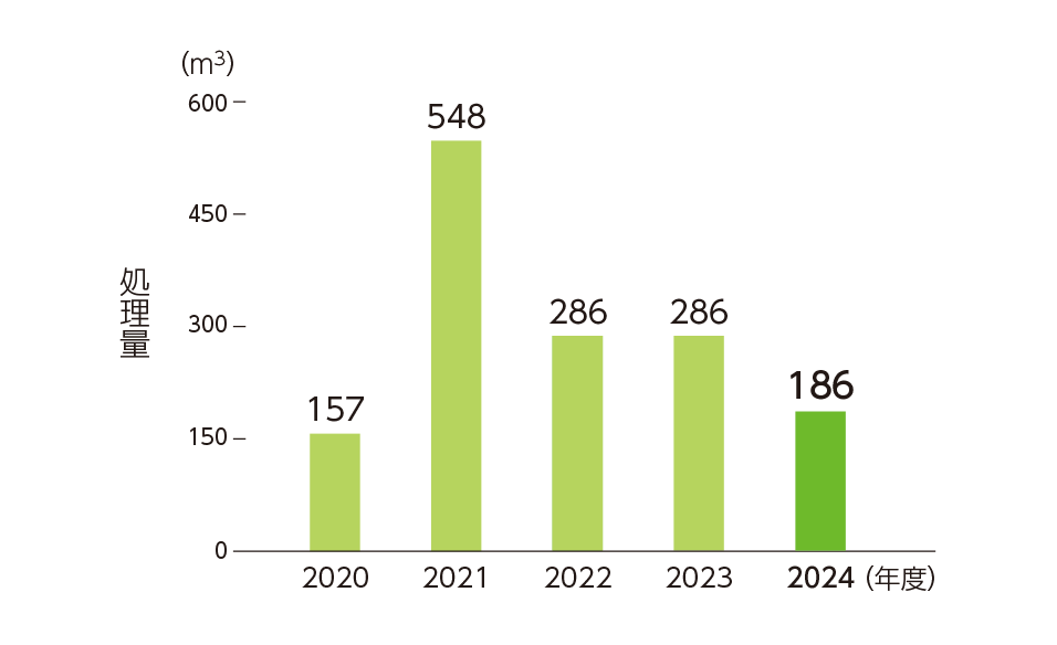 - 「大気汚染防止法」や「石綿障害予防規則」等の法令に基づき、解体工事や改修・補修工事等で発生したアスベストを適正に除去しています。また、「廃棄物処理法」に基づき、非飛散性アスベストについても、石綿含有産業廃棄物として適正に処理しています。