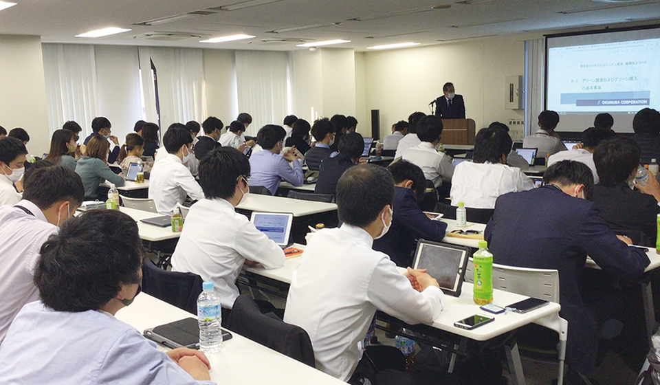 全社的、体系的な環境およびマネジメントシステムに関する教育カリキュラムを策定し、日常業務を遂行できる基本的知識の講義と産廃処理施設の見学や、管理者としての力量を習得するための講義を行っています。