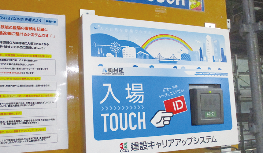CCUSは技能者一人ひとりにICカードを発行して、日々の就労履歴(いつ、どこの現場で、どの業種、立場など)を電子的に記録し蓄積するほか、保有資格や社会保険加入状況なども蓄積する業界横断的な仕組みです。その活用により、技能者の公平な評価、将来の担い手確保、工事の品質向上、現場の効率化などに繋げていくことを目指しており、当社でもCCUSの取組に賛同し、積極的に全社で展開し進めています。