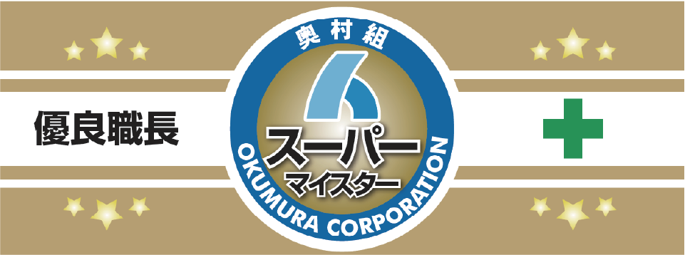 当社では2013年4月から、現場運営のリーダーとして活躍し、その要となる協力会社の中から、ものづくりの実績・貢献度・人格等が特に優秀な職長を、「奥村組優良職長(マイスター)」に認定し、「施工の達人」として培った貴重な経験と技能を伝承、また現場運営のリーダーとして他の模範・目標となり活躍していただきます。
