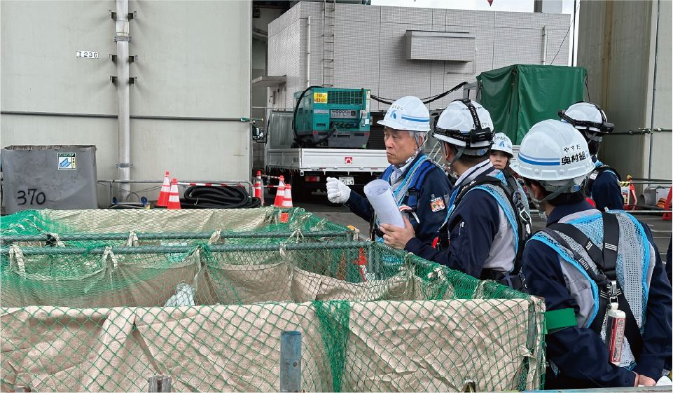 現場での安全衛生管理状況の把握と指導のため、本社および支社店による安全衛生パトロールを実施しています。さらに全国安全週間中には、社長による現場安全衛生パトロールを実施しています。