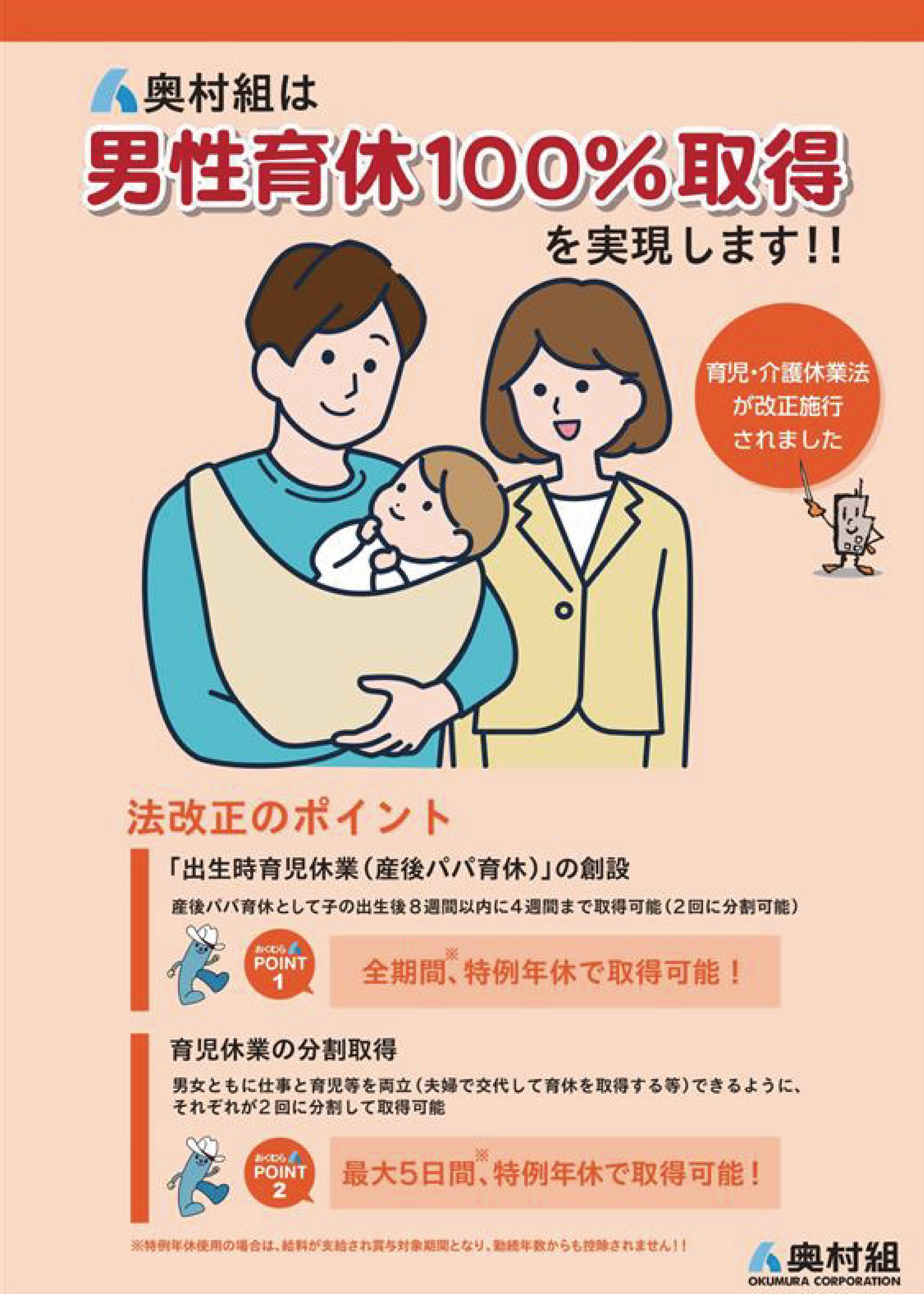 - ・男性育休推進動画、男性育休推進ポスターの作成