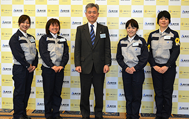 その中の1名は、奥村組の九州支店新社屋の建設を担当しています。この工事所では、工事所長をはじめ、構造設計監理者、安全衛生担当者、事務担当者のほか、協力会社の女性でチームを結成し、日建連が女性活躍推進を目的として展開している「けんせつ小町工事チーム」として登録しました。