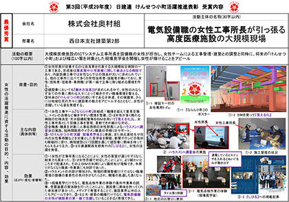 当社の受賞は、第1回に「優秀賞」を受賞した、けんせつ小町工事チーム「八幡ひまわり」に引き続き2回目となります。