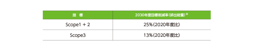 当社グループでは、気候関連のリスクおよび機会を評価・管理する際に使用する指標と目標として、温室効果ガス(GHG)排出削減目標を次のとおり設定しています。なお、同目標は2023年1月にSBT認定を取得しています。