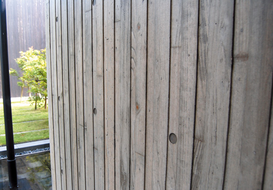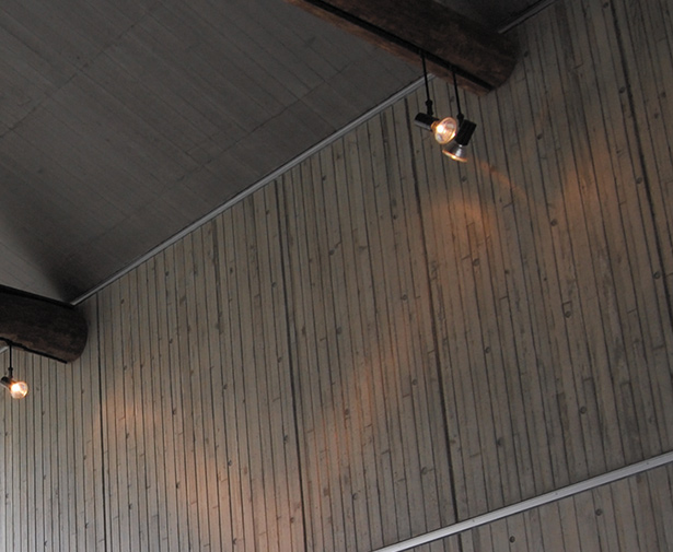 従来の本実型枠による打放しをしのぐ繊細な表現を実現するために、幅35~60㎜、厚12、15㎜の杉板をベニヤ板に打ちつけたものを型枠として採用。試行を重ね、杉板の管理(下処理・湿潤状況・断面形状)や、コンクリートの固さ、脱型のタイミング等に細心の注意を払いました。