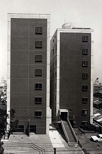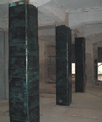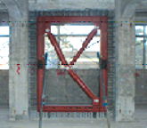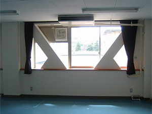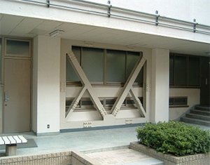鉄骨K型ブレースを建物の内部や外部に取付けて、耐震補強を行っています。