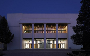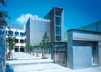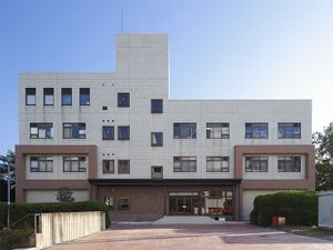 既存建物の外観と調和した外付けフレームによる耐震補強を行いました。講堂は、耐震壁増設等により補強しました。