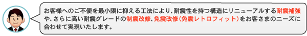 お客様にご用意していただくのは、設計図書(建築確認申請副本)、構造計算書などです(保有されている範囲で結構です)。診断結果を基に、補強設計を行い、耐震改修の期間および費用をご提示します。