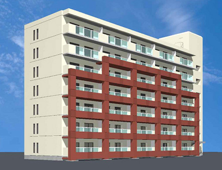 バルコニーのあるタイプの建物を外側から耐震補強する場合に適した工法です。