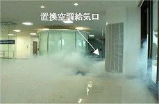 置換空調システムは、高さ方向に温度を変化させて、人が活動する居住域の快適性を確保する空調システムです。省エネ効果も期待できます。