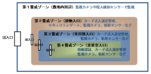 敷地・建物・専用部・重要室など複数のゲートをベースとして、防犯機器を組み合わせ、