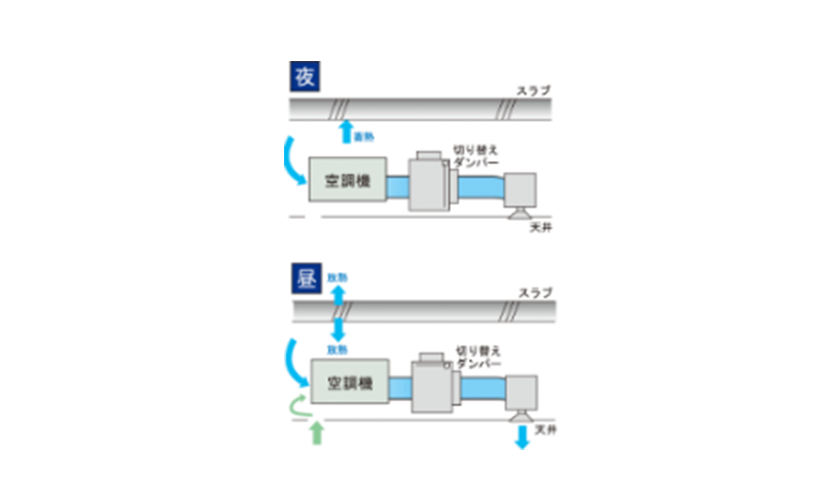 割安な夜間電力を熱エネルギーとして蓄え利用することで、昼間の空調負荷を低減します。
