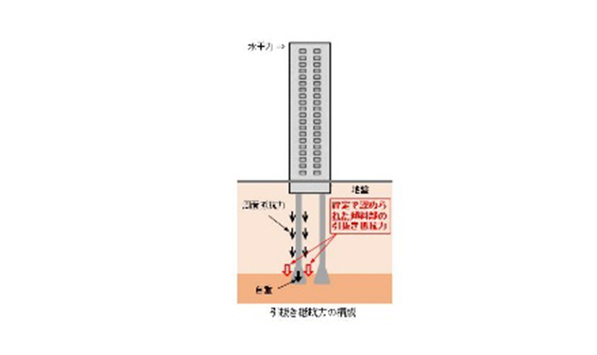 場所打ちコンクリート拡底杭の引抜き抵抗力を従来よりも高く評価することができる工法です。これによって、杭の軸径部のスリム化や杭長の短縮が可能となり、コストや地球環境への負荷が低減できます。