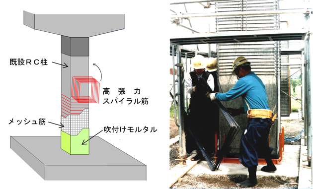 高張力スパイラル筋巻立工法(鉄筋コンクリート柱の耐震補強工法)