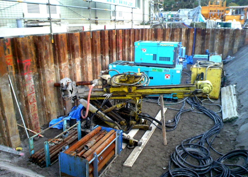 土壌中に存在する重金属元素を化学的に溶けにくくして、周辺への溶出性を抑制する工法です。重金属汚染に対するトリータビリティテスト等により適切な不溶化処理剤を選定します。パワーブレンダー工法等の鉛直混合方式を用いることで、数メートルの深さまで合理的にカドミウム、鉛、水銀化合物等の不溶化処理を実施することができます。