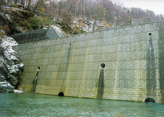 自然石模様をつけた砂防ダム