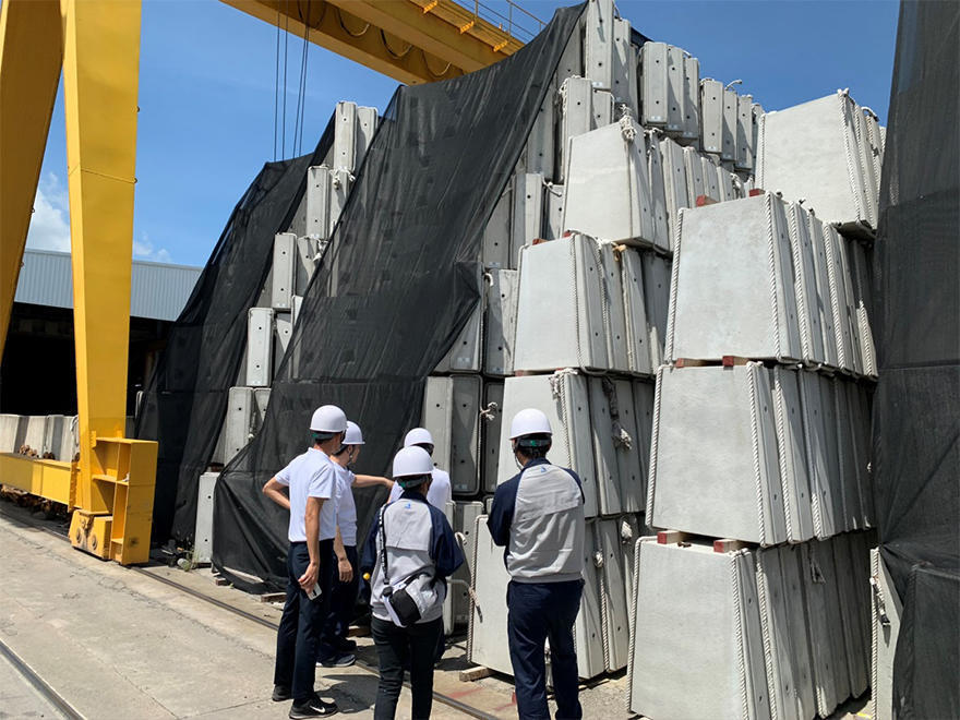 潛盾工程最重要之結構材料「預鑄混凝土環片」,本公司係委託經臺北市政府捷運局評鑑合格之廠商進行生產。本工程所採用之預鑄混凝土環片自108年10月正式量產,已於110年1月正式出貨使用,生產期間亦嚴格管控其品質。