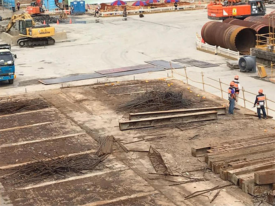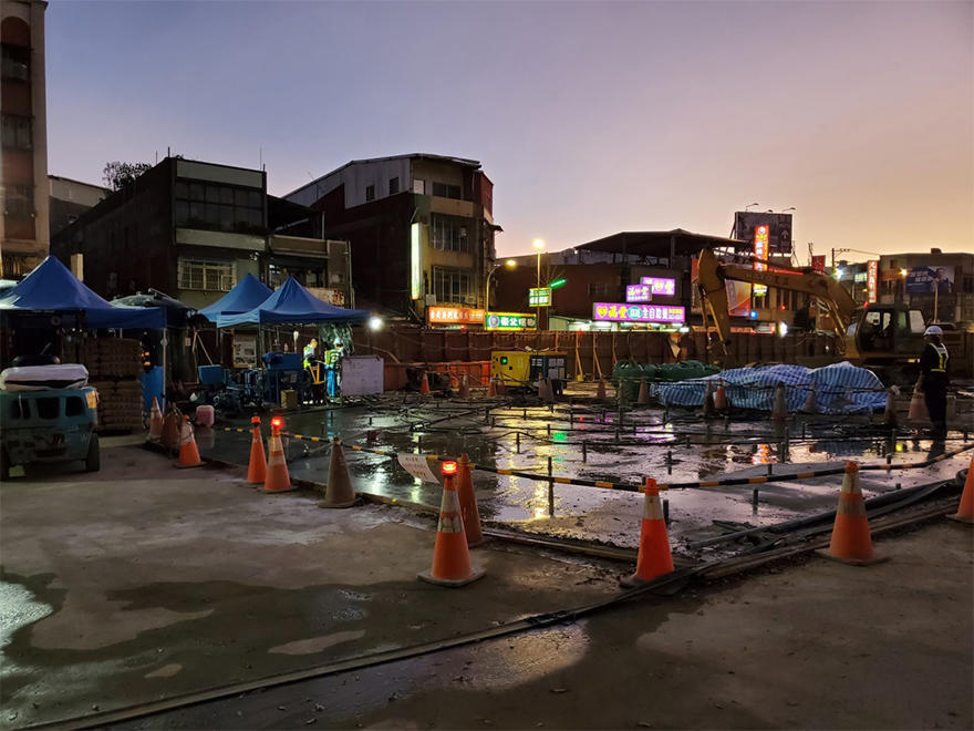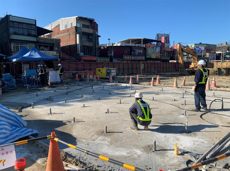 本工程自108年7月開工以來,統包團隊受限於管線遷移的影響,道路段工作進展較不順遂,僅有VS6通風井順利完成連續壁施作,並於109年10月份交付本公司進場施作地盤改良工作。本處VS6通風井為潛盾機中繼點,包含到達及再出發作業,需同時進行4處的地盤改良工作。因後續尚需交還場地進行後續開挖支撐作業,工期緊湊,幸而於110年2月順利完成本處工作,圓滿退場。G07站為本標潛盾段終點,G07站由GC03標負責施工,110年5月已正式通知可交付到達井端進場施作地盤改良作業,目前亦與台鐵協調辦理進場施工許可中。