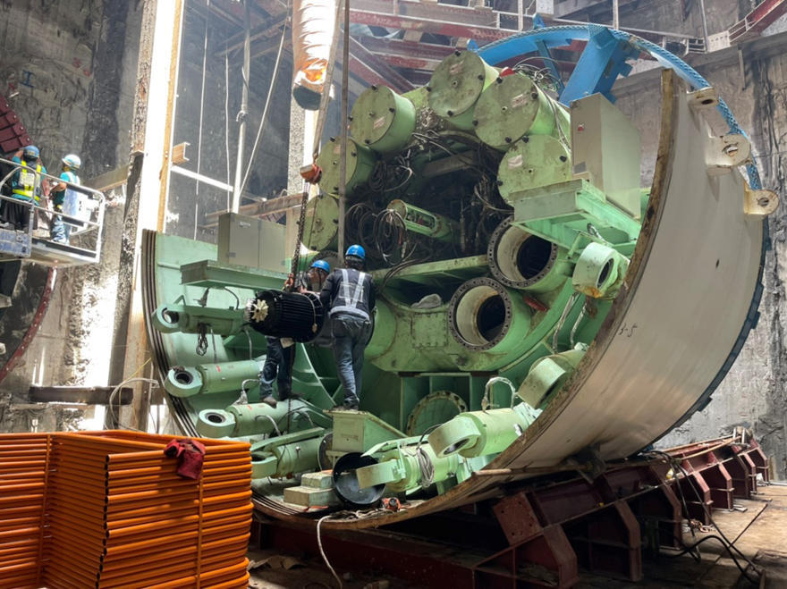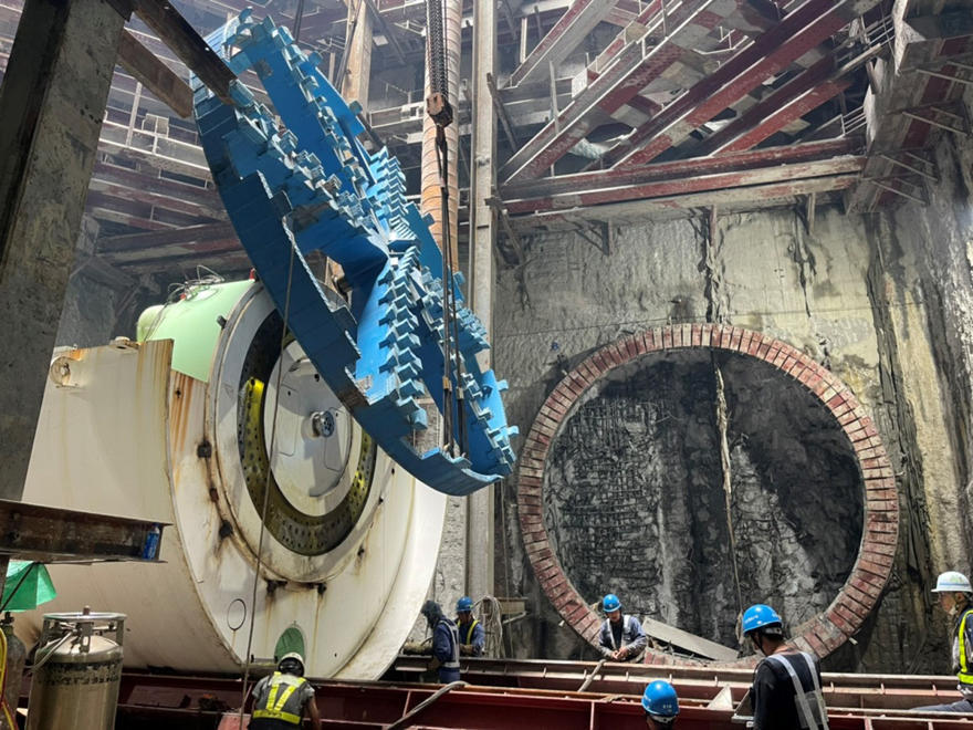 臺北捷運CQ860標目前除了正在掘進中的1號機外,本月最重要的工作就是開始進行2號及3號機的投入及組裝作業,由於現場空間狹小,需要先將3號機初部組裝完成後推移到旁邊,才有足夠的空間再進行2號機的投入及組裝作業,等兩部機完成初步組裝後,才會正式將潛盾機推移定位。