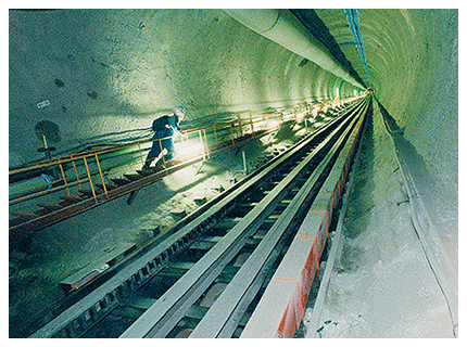 長大斜坑を短期間かつ経済的に施工するため、世界で初めての試みである全断面を一度にTBMで掘削する工法を採用した。