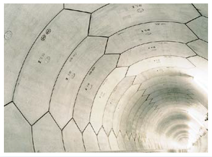 シールドトンネルの急速施工を実現するため、シールド掘進とセグメント組立の同時施工の研究過程で開発したわが国で初めての六角形のセグメント。組立後の形態が蜂の巣(honeycomb)状であることから「ハニカムセグメント」と命名した。