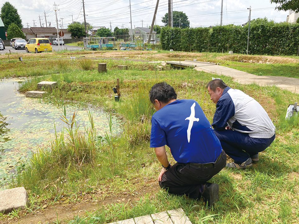 技術研究所(つくば市)のビオトープの植生調査の様子