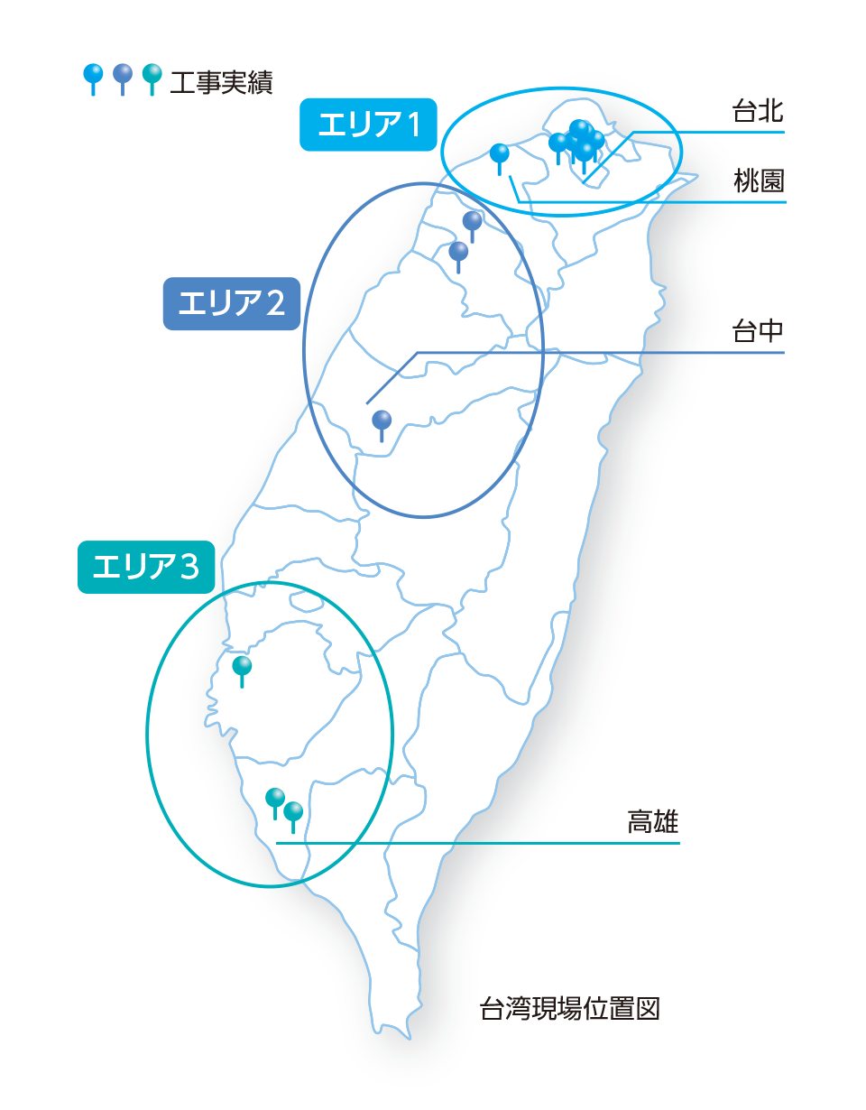 エリア2台湾電力の地下ケーブルトンネル工事など、現在2件のプロジェクトが進行中です。台湾中西部にはシールド施工が非常に困難な玉石層が広く分布しており、この地質を技術力でいかに克服するかが大きな鍵となります。
