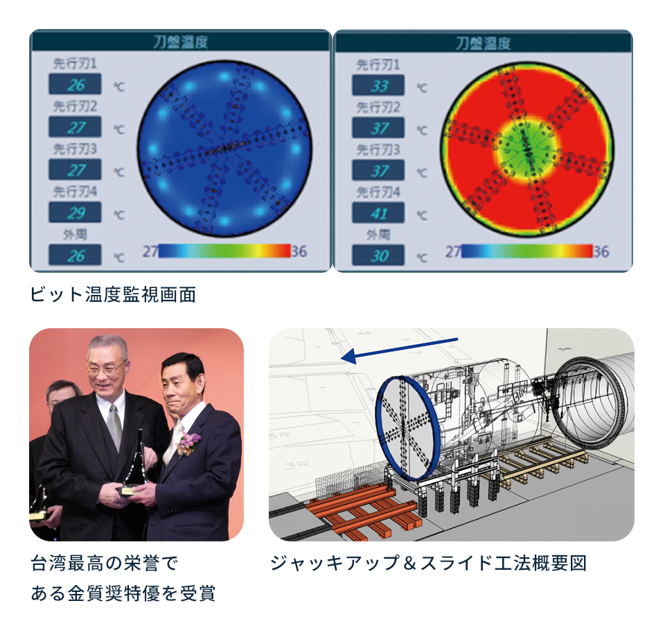 MRT空港線プロジェクトでは、シールドマシンのビット温度監視技術や圧送管排土技術など、後に日本・台湾の両国で特許を取得した技術を開発することにより、困難な地質条件をクリアし、工事を無事成功に導きました。