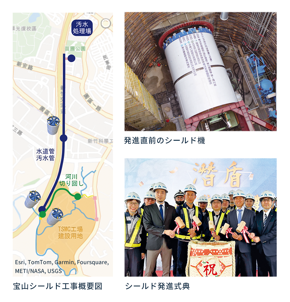 本工事は、世界最大級の半導体メーカーであるTSMCの工場建設用インフラを整備するもので、河川切り回し用と水道管・汚水管敷設用の計3スパン約3kmのトンネルを、シールド工法により築造するものです。場所は、台湾半導体産業の中枢である新竹科学園区であり、まさに台湾経済を支える大黒柱の一部となる工事です。「ムーアの法則※」に代表されるように、半導体産業は時間が非常に重要視されることから、前例のない厳しい条件にて工期が設定されています。